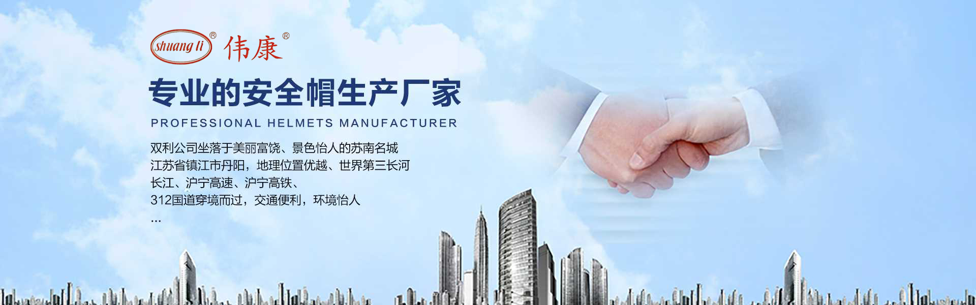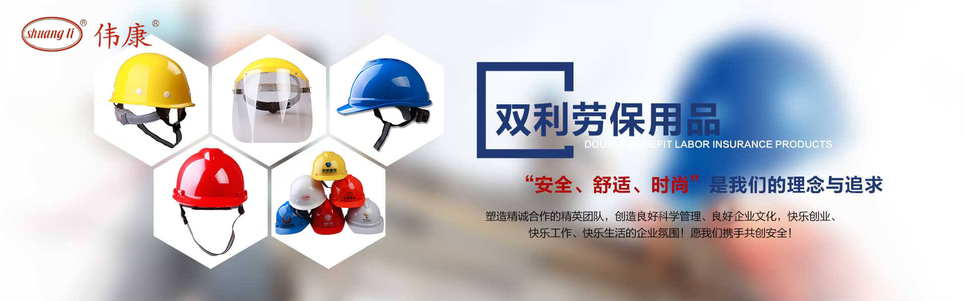專業(yè)的安全帽生產(chǎn)廠家-鎮(zhèn)江市雙利勞保用品有限公司。雙利公司坐落于美麗富饒、景色怡人的蘇南名城——江蘇省鎮(zhèn)江市丹陽(yáng),地理位置優(yōu)越、世界第三長(zhǎng)河——長(zhǎng)江、滬寧高速、滬寧高鐵、312國(guó)道穿境而過(guò),交通便利,環(huán)境怡人。鎮(zhèn)江市雙利勞保用品有限公司是鎮(zhèn)江市第一家創(chuàng)辦的專業(yè)生產(chǎn)安全帽的生產(chǎn)商,并申請(qǐng)擁有自己的品牌:shuangli牌和偉康牌,立足致力于安全帽研究,從原料入手研發(fā)出韌性更強(qiáng)、抗沖力更高的特點(diǎn)。公司根據(jù)實(shí)際運(yùn)行需要建立高效、務(wù)實(shí)、有序的組織機(jī)構(gòu),實(shí)現(xiàn)現(xiàn)代化公司管理。同時(shí)公司具備專業(yè)完善的生產(chǎn)設(shè)備和成熟的安全帽生產(chǎn)工藝及先進(jìn)的檢測(cè)儀器,為產(chǎn)品的質(zhì)量奠定了堅(jiān)實(shí)的基礎(chǔ),各項(xiàng)技術(shù)指標(biāo)均達(dá)到國(guó)家《GB2811-2019》《安全帽》標(biāo)準(zhǔn)。產(chǎn)品廣泛適用于建筑、林業(yè)、石油、石化、造船、港口、冶金等行業(yè)。 “安全、舒適、時(shí)尚”是我們的理念與追求,塑造精誠(chéng)合作的精英團(tuán)隊(duì),創(chuàng)造科學(xué)管理、良好的企業(yè)文化,快樂(lè)創(chuàng)業(yè)、快樂(lè)工作、快樂(lè)生活的企業(yè)氛圍!愿我們攜手共創(chuàng)安全!